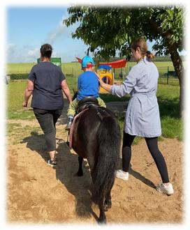 Auch Ponyreiten stand auf dem Programm. Geduldig ließen sich die Ponys von den Kindern streicheln und ritten mit ihnen gemächlich über das Kitagelände. Voller Stolz strahlten die kleinen Reiter und Reiterinnen auf dem Pferderücken. Für manche Kinder war es der allererste Kontakt mit den Ponys und sie streichelten die Tiere und bestaunten die weiche Mähne.