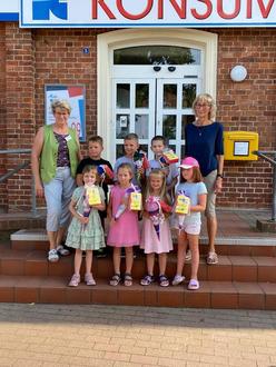Mit einer kleinen Überraschung machten die Bürgermeisterin Frau Böbel und Frau Thees vom Konsum Redefin den aufgeregten Zwergen Mut für den neuen Lebensabschnitt. Herzlichen Glückwunsch zur Einschulung.