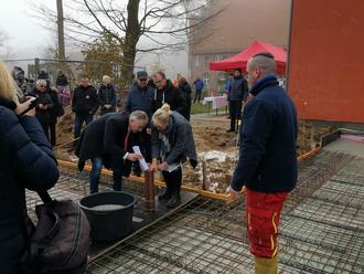 Der Bürgermeister begrüßte dann den Bürgervorsteher, die Fraktionsvorsitzenden von CDU, SPD und WFN in der Stadtvertretung Neukloster. Weiterhin den Planer, die Bauleute und Mitarbeiter der Verwaltung und für die Kinder - die wichtigste Person - die Leiterin der KITA - Frau Wichert. Eigentlich wird ja kein Grundstein mehr gelegt. Es wurde eine Grundplatte gegossen und in diese wurde eine Zeitkapsel eingemauert. Diese enthält die OZ vom 25.11.2022, Fotos, eine Keramik, Baupläne, Münzen und eine Übersicht aller am Bau Beteiligten.