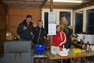 man gemeinsam schnacken konnte. Hier traf man sich zum Plausch. Leider musste auf die Zuckerwatte verzichtet werden, bei den Temperaturen streikte das Gerät. Schade! Unsere Kleinen bastelten unter Anleitung fleißig mit Holz, und zwar Weihnachtsmänner!