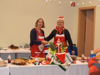Das weihnachtliche Ambiente mit geschmückten Tannenbäumen und Schwedenfeuern gaben dem Terrain um das Gemeindehaus die passende Atmosphäre. Hier hatten Freunde des herzhaften Genusses ihr Domizil. Neben der Wildbratwurst hatte auch die Thüringer Bratwurst ihre Fans. Von dort zum Glühwein war es nur ein Schritt. Freunde des Süßen fanden jedoch im Gemeindehaus Kaffee + Kuchen sowie heiße Waffeln vor, wo