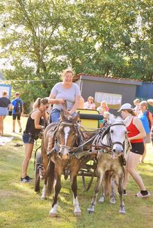 Danach fand das Puppentheater für unseren Kleinen im Außengelände der Kita statt. Einige Kita-Mitarbeiterinnen haben die Kinder bis 18.00 Uhr belustigt. Das Kinderschminken kam wie immer sehr gut bei den Kleinen und Größeren an. Ein Spaß für Groß und Klein waren die Kutschfahrten und das Ponyreiten durch den Reit-und Fahrverein Strameuss. Der Jagdverein hat sich mit Luftgewehrschießen beteiligt. Dieses wurde von vielen Besuchern sehr gerne angenommen. Die Feuerwehr hatte einen Simulator aufgebaut und mutige Besucher haben sich daran erfreut.