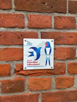 Lübberstorf. – Fröhliches Zwitschern gehört ab sofort offiziell zum Klangbild des Hofes Hacker: der NABU Deutschland hat den historischen Pferdestall von 1894 als „Schwalbenfreundliches Haus“ ausgezeichnet. Anfang September war es soweit, Gemeindebürgermeister Ronny Krüger überreichte die offizielle Urkunde und brachte gemeinsam mit dem Hausherrn Dirk Hacker das entsprechende Schild am Stall an.