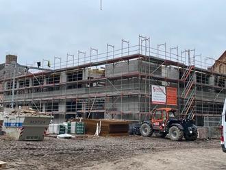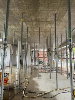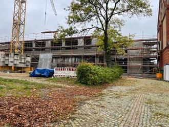 Die Wände im 1. OG sind fertiggestellt und die Schalung und Bewehrung für die Geschossdecke zwischen 1. und 2. OG ebenfalls. Am Freitag, den 27.10., erfolgte die Betonierung der Decke. Fahrstuhlschacht und Treppenhaus sind bereits betoniert. Die Stufenanlage im Atrium ist ebenfalls betoniert und wieder ausgeschalt. Nun geht es bald an das 2. OG und die Kubatur des gesamten Bauwerkes wird erkennbar.
