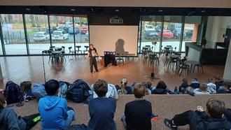 Mit viel Witz, schauspielerischem Talent und stimmlicher Wandlungsfähigkeit ließ er die Geschichten lebendig werden und zog sein junges Publikum in den Bann. Die Lesung sorgte für viel Begeisterung und Applaus – ein unterhaltsames Erlebnis, das Lust auf mehr Lesen machte.
