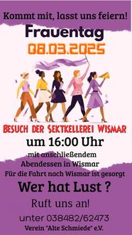 der Verein "Alte Schmiede" e.V. und die Gemeinde Bibow laden euch am 08.03.2025 zu einer Führung in die Sektkellerei Wismar ein.