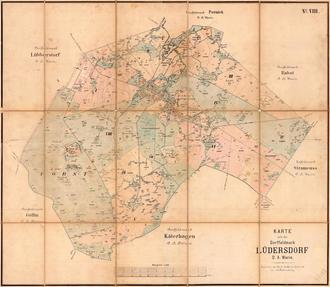 Diese detailgetreue Flurkarte, gekennzeichnet als №. VIII., zeigt eindrucksvoll die damalige Aufteilung unserer Landschaft. Sie dokumentiert nicht nur das Gemeindegebiet von Lübberstorf mit dem Ortsteil Lüdersdorf selbst, sondern auch die angrenzenden Feldmarken und Nachbarorte, die uns bis heute vertraut sind: