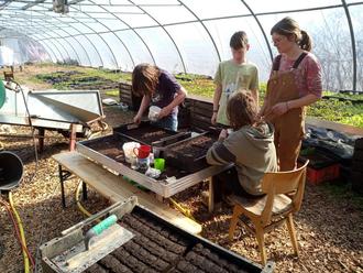 Seit einem Jahr gibt es einen weiteren Lernort: In Neperstorf betreibt die Gärtnerin Marie Runge eine Jungpflanzen-Manufaktur. Woche für Woche lernen dort die 5.- und 6.-Klässler, wie die winzigen Samen von Kohl und Salaten in kleine Pressballen gedrückt werden, wie diese dann abgesiebt und zum Keimen ins Dunkle gestellt werden. Fantastisch, wenn dann nach einigen Wochen die Stiegen in dutzenden Grüntönen erstrahlen.