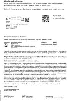 Im Gegensatz zu den vorherigen Wahlen, erhalten Sie dieses Jahr keine Wahlbenachrichtigungskarte, sondern eine Wahlbenachrichtigung im DIN A4-Format.