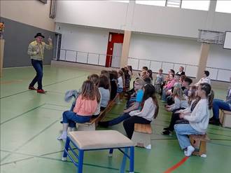 Der Gitarrist Frank Fröhlich war am Freitag, den 04.04.2025 zu Gast in der Sporthalle der Grundschule Neukloster. Dort erfreute er mit seinem „Mitmachkonzert“ nicht nur die Kinder der 1. und 2. Klassen, sondern auch die Lehrer. Während des Konzertes wurden verschiedene Instrumente vorgestellt.