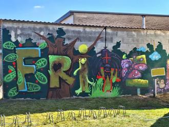 Am 10.03.2025 war es an der Fritz-Reuter-Grundschule in Warin endlich so weit, als um kurz vor sieben, am Morgen, alle sehr aufgeregt den Tag erwarteten. Heute sollte die 100 qm Wand hinter der Schule mit den Schülern der Klasse 4 und einem Graffiti Künstler zum Thema Wald, bunt besprüht werden. Der Ideenträger war die Direktorin Frau Freund. Sie gab die Aufgabe einen Sprayer zu organisieren und das Projekt zu begleiten, verantwortungsvoll an den Schulsozialarbeiter Herrn Kasten ab. Nach vielen Telefonaten, um einen geeigneten Künstler zu finden, der die finanziellen Vorgaben erfüllte, fiel die Wahl auf den jungen, innovativen und freischaffenden Künstler Arkadij Blinow. Der studierte Illustrator und Kommunikationsdesigner aus Mecklenburg Vorpommern ist bekannt für seine interdisziplinären Projekte, Kunst und Natur miteinander zu verbinden. Nach über einem halben Jahr Wartezeit war es dann kurzfristig so weit und plötzlich ging alles ganz schnell. Die Schüler der vierten Klasse entwickelten mit der Klassenlehrerin Frau Hausmann und der Kunstlehrerin Frau Gluth eine Stunde vorher auf DIN A4-Papier ihre eigenen Skizzen. So entstanden Schnecken, Blätter, Bäume, Spinnen, Biber und sogar ein Hecht. In zwei Gruppen konnten sich die Schüler austoben, welches die Lehrerschaft mit Beängstigung beobachtete. So gestalteten die Kinder die Wand mit ihren eigenen Ideen zum Thema Wald.