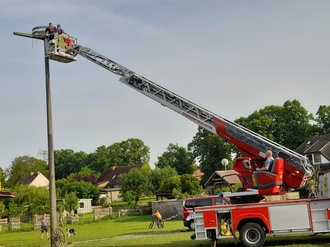 Ende Mai wurde auf dem Grundstück der Familie Löwe in Schmakentin ein neues Storchennest gebaut. Es wurde auf einem stillgelegten Strommast befestigt.