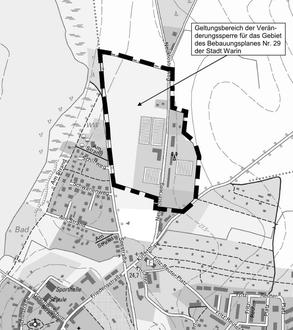 Die Stadtvertretung der Stadt Warin hat aufgrund von § 5 Abs. 1 der Kommunalverfassung M-V (KV M-V) vom 13.07.2011 (GVOBl. M-V S. 777) zuletzt geändert am 16.05.2024 (GVOBI. M-V S. 270, 351) und der §§ 14 u. 16 des Baugesetzbuches (BauGB) in der Fassung der Bekanntmachung vom 03.11.2017 (BGBl. I S. 3634), zuletzt geändert am 20.12.2023 (BGBI. 2023 I Nr. 394) in ihrer Sitzung am 27.05.2021 die Aufstellung der Satzung über den Bebauungsplan Nr. 29 „Wohnen und Ferienwohnen am Neuklosterweg“ beschlossen. Zur Sicherung der Planung hat die Stadtvertretung der Stadt Warin in ihrer Sitzung am 27.03.2025 für den Geltungsbereich des Bebauungsplanes Nr. 29 gemäß § 16 BauGB eine Veränderungssperre als Satzung beschlossen; dies wird hiermit gemäß § 16 Abs. 2 Satz 2 BauGB bekannt gemacht.