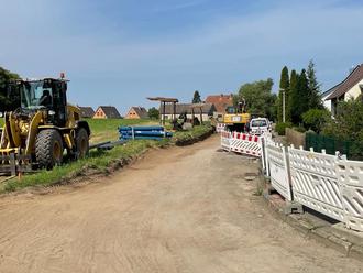 Im restlichen Teil der Neuen Straße wurde die alte Straßenoberfläche abgefräst und beginnend an der unteren Einfahrt von der Pernieker Straße aus werden haltungsweise (von Schacht zu Schacht) die Regen- und Abwasserleitungen gelegt. Es folgt dann die Verlegung der Wasserleitung. In Teilbereichen folgt auch noch die Breitbandversorgung.