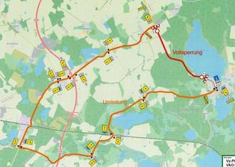Vollsperrung der B 192 zwischen Ortsausgang Warin und der Kreuzung zur L 101/Büschow wegen Fahrbahndeckeninstandsetzung