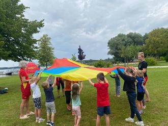 Mit unterschiedlichen Hilfsmitteln, wie Schwimmflügel, Schwimmbrettern, Poolnudeln und Schwimmgürteln wurde die Ausbildung begonnen. Im Wasser fanden sich auch immer AusbilderInnen, die den Kindern Zuvertrauen und Sicherheit signalisierten und ungenaue Bewegungen korrigierten. Zunehmend wurden die Hilfsmittel dann reduziert und für das Erreichen des begehrten Seepferdchens abgelegt. Zahlreiche Kinder haben die Anforderungen dafür erbracht, einige benötigen noch ein paar Stunden oder auf Grund des Alters vielleicht einen zweiten Anlauf im nächsten Jahr. Wie immer war das Wetter im Schwimmkurs durchwachsen - Sonne, Wind, Regen, Sturm, Unwetter, Hitze forderte alle heraus.