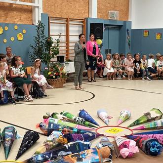 Begrüßung der Erstklässler in der Sporthalle Warin