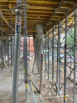 Schalung der Decke 1. OG - Fertige Säulen, später außen
