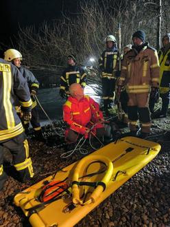 Der brettförmige Rettungsschlitten der Rechliner Feuerwehr kam ebenfalls zum Einsatz