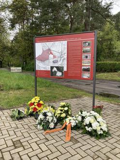 Am 6. Mai fand in einem festlich-musikalischen Rahmen das Gedenken am Mahnmal in der Lagerstraße statt. In seiner Eröffnungsrede erinnerte der Bürgermeister René Putzar an die katastrophalen Lebensumstände, die körperlich schwere und giftige Arbeit, die täglich mit Qual und Folter einherging. „… diesen Ort, als Erinnerungsort des Vergessens aufzubauen …“, so Putzar, sei eines der großen Aufgaben, hier einen angemessenen Rahmen zu schaffen, das aufklären, mahnen und auch junge Menschen ansprechen soll.