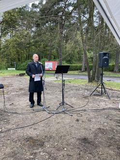 Eingerahmt von musikalischen Akzenten für Klavier und Trompete, gespielt von Ines und Gerrit Otterpohl und einem weiteren Redebeitrag des Schülers, Jarne-Neklas Thiele der Fleesenseeschule, fand Pastor Kändler anschließend ergreifende Worte. Der Satz „Wir gedenken, damit so etwas nie wieder passiert.“ ist an diesen Veranstaltungen sehr häufig, so Kändler, aber: „Ich finde, er darf vor allem im Alltag nicht fehlen - das ist unsere Herausforderung heute.“ Dass Demokratie anstrengend ist und Prozesse durchlaufen muss, das ist gewiss, aber es darf keine Ausgrenzungen mehr geben und es braucht Zeit, einen ehrwürdigen Platz wie diesen hier neu zu gestalten.