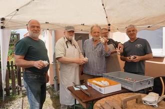 Der Stand, an dem dem Rakubrand zugesehen werden konnte (3 .v. l. Franz Poppe)