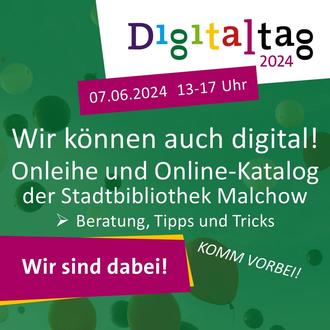 Die Stadtbibliothek Malchow ist beim bundesweiten Digitaltag dabei. Bei „Wir können auch digital“ dreht sich alles um die Onleihe und den Online-Katalog. Die Aktion richtet sich an Jung und Alt. Das Team der Stadtbibliothek Malchow freut sich darüber, mit ihren Lesern und Gästen gemeinsam Digitalisierung zu erleben! Es gibt Beratungen zur Nutzung der Onleihe und der Onleihe-App sowie zur Handhabung des Online-Kataloges (eOPAC).