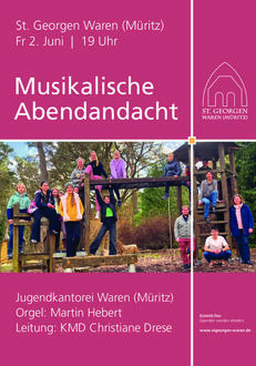 Eine „Musikalische Abendandacht“ findet am 02. Juni in der Warener Georgenkirche und am 03. Juni in der Kirche Groß Plasten, jeweils um 19:00 Uhr, statt.
