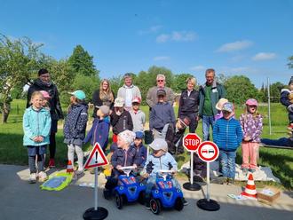Kleine ganz groß - Danke für die Unterstützung an das Autohaus Setzkorn und die Verkehrswacht (im Hintergrund)