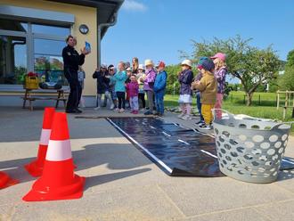 Auf spielerische Weise wurde am 26. Mai ein Verkehrssicherheitstraining im Sietower Kindergarten „Seute Plappersnuten“ bei strahlendem Sonnenschein veranstaltet.