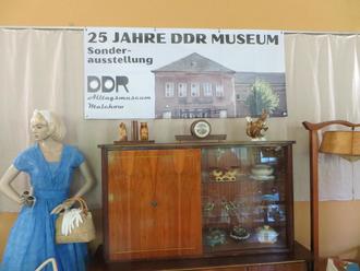 Malchow (bedi). Das DDR-Alltagsmuseum in der Inselstadt Malchow feiert in diesem Jahr sein Vierteljahrhundert. Zu diesem Anlass schufen die Mitarbeiterinnen um Leiterin Susanne Burmeister die Sonderausstellung „Ein Querschnitt durch vier Jahrzehnte DDR - 25 Jahre DDR-Museum Malchow“. Zum Monatswechsel vom Mai auf den Juni löste diese die Sonderausstellung zu den ZEKIWA-Kinderwagen ab, die ebenfalls auf der rund zwanzig Quadratmeter großen Fläche im Erdgeschoss aufgebaut gewesen war, die den wechselnden Expositionen vorbehalten ist. Bis September wird hier jeweils eine typische Szene aus einer der Dekaden innerhalb des Zeitraums zu sehen sein: So ist der Juni den 50-ern in der DDR gewidmet, der Juli den 60-ern, der August den 70-ern und der September den 80-ern. Kurz nach Museumsöffnung um 10 Uhr am 1. Juni bot sich den ersten Besuchern an diesem Tag eine Komposition aus einem stilechten Raumteiler mit Kunstblume, einem Nierentisch mit alten Ausgaben des „Magazins“, einer mechanischen Schreibmaschine der Marke „Erika“, einem Plattenspieler mit einer „AMIGA“-Platte, einem blauen Kleid mit Petticoat auf einer Puppe, einem braunen Schrank mit Glastür, einem Kinder-Dreirad, einem Tisch mit Läufer und Stehlampe daneben und einem alten „Diamant“-Damenrad. Die große Uhr auf dem Schrank löste gleich bei mehreren Gästen ein Schmunzeln aus. „So eine hatten meine Eltern“, meinte einer. Am Ende war man sich einig: „Diese Uhr stand damals in jedem zweiten Haushalt.“ Das Arrangement ist noch bis Ende Juni zu sehen, bevor es der Szene für die 60-er Platz macht. Man darf gespannt sein, welche Gegenstände das Museumsteam für diese auswählen wird.