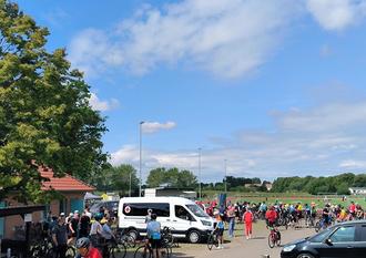 Röbel (at). Als am Samstag, dem 31. Mai die ersten Radlerinnen und Radler am Depot auf den Friesensportplatz Röbel einrollten, hatten sie schon satte 156 Kilometer in den Beinen. „Da kennt die Wade wirklich keine Gnade“, lacht Marco Burchert aus Röbel, der gemeinsam mit Teampartner Thomas Werner bereits um 0:30 Uhr aus den Federn sprang, ins Auto stieg und zum Startpunkt nach Neubrandenburg fuhr. Um 4:20 Uhr fiel dort der Startschuss für die 300 Kilometer lange Strecke der 11. Mecklenburger Seen Runde.