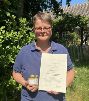 Christine Jantzen mit der vom Landtag gezeichneten Urkunde für den Umweltpreis