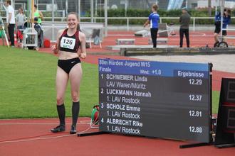 Linda Schwemer, zweifache Landesmeisterin im Hochsprung und 80-m-Hürden sowie Vizemeisterin im Weitsprung mit 5,25 m, 4. Platz über 100 m und sechste im Speerwurf