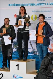 Auf dem Hauptkurs vor der Außenmüritz organisierte Wettfahrtleiterin Valentina Tast mit ihrem Regattateam drei faire Wettfahrten am Samstag.