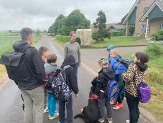 Am 28. Mai 2025 hieß es für acht kleine Entdeckerinnen und Entdecker der Förderklasse DFLG 2: Rucksack auf, Wanderschuhe an und los geht’s! Zusammen mit zwei Lehrkräften ging es zu Fuß nach Bollewick - Ziel: der Milchviehbetrieb Van der Ham. Was genau sie dort erwartete? Das blieb zunächst ein Geheimnis. Nur so viel war klar: Es wird spannend!