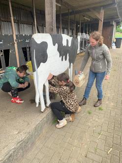 Doch es ging noch weiter: Bei den Kälbchen wurden gestreichelt und sogar erste Melkversuche am Modell gemacht - mit großem Eifer und viel Gelächter.
