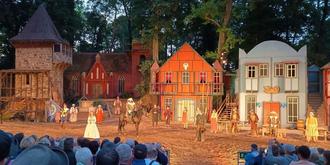 Waren (-lke). Das schöne Wetter hatten sich die vielen Beteiligten, Schauspieler, Statisten, Kulissenbauer, Kostümbildner, technische Kräfte, Regisseur, Helfer bei der Verpflegung und, und, und… wirklich verdient am Premierenabend der Müritz-Saga am letzten Junisamstag. Kein Tröpfchen Regen trübte die gute Laune der zahlreichen Besucher, unter ihnen sogar der Landrat der Mecklenburgischen Seenplatte, Heiko Kärger, die sich den Start von „Verraten und verkauft“ nicht entgehen lassen wollten. Bereits das 17. Stück wurde hier mit allerlei lustigen Einlagen, etlichen Stuntbeiträgen, Kampf- und Fechtszenen sowie natürlich wieder auch Reiterei aufgeführt. Wer genau hinhörte, konnte Anspielungen auf die heutige Zeit durchaus erkennen. „Werden die Menschen in 400 Jahren (also in unserer heutigen Gegenwart) klüger sein und keine Kriege mehr führen?“, lautete ein Zitat. Oder der Fall des intriganten Würdenträgers, der sich mit Lügen, Betrügen und Tricksen im Amt zu halten versucht. Da drängen sich durchaus Vergleiche auf. Gut, dass der maskierte Rächer alias Zacharias von Warentin auf den Plan trat und die fiesen Pläne vereitelte. Leider endete das Stück für ihn nicht mit einem Happy End, denn die zarten Liebesbande zur schwedischen Prinzessin zerrissen ziemlich schmerzhaft, als selbige ihren royalen Pflichten nachkommen musste, um als Königin den schwedischen Thron zu besteigen. Und wieder haben sich die Macher dieses kulturellen Highlights in Waren unter Leitung des Intendanten und Regisseurs Nils Düwell und seiner Familie mit phantasievollen Bühnenbildern, großartigen historischen Kostümen und einer spannenden Handlung allergrößte Mühe gegeben, für Kurzweil im Publikum zu sorgen. Bei dem Lied: „An der Müritz“ konnten sogar alle mit einstimmen, denn es taucht jedes Jahr im Stück auf. Bis zum 24. August von Mittwoch bis Sonntag kann der interessierte Besucher an einem der schönsten Kulturorte der Region eintauchen in die Welt des Barocks mitten im 30-jährigen Krieg. Aber nach der Premiere ist vor der Premiere. Die Vorbereitungen für das neue Stück 2025 laufen bereits.