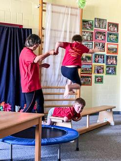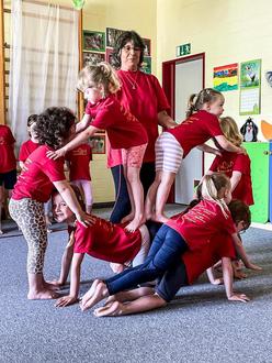 Dann: Stille. Das Licht dimmt sich. Die Moderation beginnt. Wochenlange Vorbereitung liegen hinter den Kindern - mit einem Konzept, das motorische, soziale Fähigkeiten, Teamgeist und ganz viel Spaß förderte.