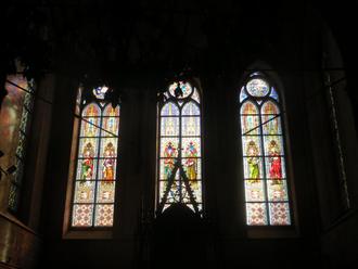 In seinem halbstündigen Vortrag lobt der Leiter des Orgelmuseums die Verdienste der Glasfensterfirma Neuhauser aus Innsbruck, die um 1890 die Farbfenster geschaffen hat. „Sie sind von guter, widerstandsfähiger Qualität und deshalb so gut erhalten.“ Da Neuhauser auch für bekannte Kirchen in größeren Städten der Region Fenster kreiert habe, könne Malchow stolz darauf sein, zu den Kunden gehört zu haben. Für die heutige Führung hat Drese die drei Heiligen auf der rechten Seite des Kirchenschiffes ausgewählt. „Ihre Biografien sind natürlich Legenden, aber sehr interessant.“ Zunächst stellt er Johannes vor, den manche als „Lieblingsjünger“ des Jesus betrachten. An Jakob, den verschiedene Überlieferungen als Vater des Johannes darstellen, demonstriert Friedrich Drese, wofür Braun im kirchlichen Farbsymbolkatalog steht: „Es symbolisiert Buße, Bescheidenheit, Rückzug aus der Welt. Jakob trägt eine braune Kutte, die ihn als Pilger oder Mönch ausweist.“ Petrus wiederum ist leicht an seinem Schlüssel zu erkennen, mit dem er die Himmelstür bewacht. Kurz geht der Museumsleiter dann noch auf andere Motive auf den Fenstern ein, wie den stilisierten Kirchturm und die Krone, die für ewiges Leben stehen soll, bevor zum Abschluss erneut in die Tasten der Sauer-Orgel greift.