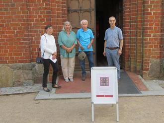 Malchow. (bedi). „Die Sonne lacht uns an und ich begrüße Sie musikalisch.“ Mit diesen Worten stimmt Friedrich Drese ein kurzes Stück auf der Sauer-Orgel in der Klosterkirche Malchow an, die zum Mecklenburgischen Orgelmuseum gehört. Um die zehn Gäste sind zur vierten Fensterführung am 31. Juli gekommen. Sie sitzen in den Bänken und schauen auf die drei großen Glasfenster auf der rechten Kirchenseite. Jetzt, acht Uhr morgens, fällt das Licht durch die Scheiben herein und lässt die Farben des Glases wunderbar leuchten. Den besten Blick auf die drei abgebildeten Heiligen – Johannes den Evangelisten, Jakob und Simon Petrus, hat man auf diese Weise – wenn die Sonne hereinscheint und man Richtung Außen schaut. Einem Besucher war dieser Anblick so wichtig, dass er halb sieben von Altentreptow losfuhr, um pünktlich zum Beginn der Fensterführung da zu sein. Er interessiere sich sehr für Kirchen und Orgelmusik und wolle später noch zu „Orgelpunktzwölf“ in die Stadtkirche, berichtet er. Bekannte Malchower Gesichter mischen sich mit Touristen. „Die bisherige Rekordbesucherzahl von zwanzig erreichen wir heute nicht. Trotzdem bin ich zufrieden mit der Resonanz“, sagt Friedrich Drese.