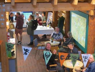 Karow (bedi). Wer die Natur liebt und ihr nahe ist, weiß: Auch schlechtes Wetter gehört dazu. Daher hatten die Mitarbeiter des Naturparks Nossentiner/Schwinzer Heide die meisten Aktivitäten des „Naturparkfests“ am 12. Juli kurzerhand vom Außengelände des Karower Meilers in dessen Inneres verlegt. Nur wenige Stände blieben draußen, unter anderem der, wo Naturparkleiter Ralf Koch Pizzabrötchen im Holzofen buk. Den Brotschieber in der Hand, nickte er verständnisvoll zur Klage einer Magdeburger Touristenfamilie. „Wir wissen, die Natur braucht den Regen und die Kühle. Aber muss es gerade in unserem Urlaub sein?“ Koch war alles in allem zufrieden mit der Resonanz, die das traditionelle Naturparkfest im Sommer erreicht hatte. „Erstaunlich, wie viele Menschen sich auch bei Regen auf den Weg zu uns gemacht haben.“