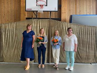 Die "alten" und die "neuen" Schulleiterinnen mit ihren Stellvertretern, v.l.n.r.: Martina Hagendahl mit Nachfolgerin Sonja Groß und Anna Hilpert, die in die Fußstapfen von Elke Einbrodt (stellv. Leiterin, rechts) treten wird