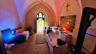 Die Atmosphäre im Vorraum der Kirche lädt ein, ins Gespräch zu kommen und gesellig zu sein. Um 15:00 Uhr beginnt die Kulinarik, um 16:00 Uhr das Konzert.