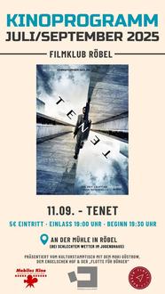 Röbel (at). Kinoerlebnis mal anders: Unter dem Motto „Kino an besonderen Orten“ lädt der Filmklub Röbel am 11. September zu einer besonderen Vorführung an der Mühle Röbel ein. Gezeigt wird der packende Science-Fiction-Thriller „Tenet“ von Regisseur Christopher Nolan – ein Film, der mit seiner komplexen Handlung, eindrucksvollen Bildern und atemberaubender Spannung wie gemacht ist für ein außergewöhnliches Kinoerlebnis.