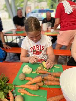 Die neunjährige Holly schnippelt das Gemüse aus der schlosseigenen Gärtnerei für das Mittagessen - das Demeter-zertifizierten Schloss setzt auf biologische Produkte