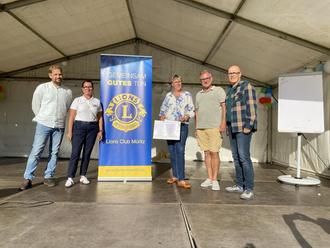 Ein symbolischer Scheck über 10.000 Euro überreichte von Mike Groß, Lions Club Waren, stellvertretend für alle beteiligten Lions Clubs und Privatpersonen aus dem gesamten Bundesgebiet. „Ohne solche Spenden könnten sich viele Familien das gar nicht leisten“, so Hake. Neben Lions engagierten sich zahlreiche Unterstützerinnen – Ärztinnen, Beraterinnen, Pflegekräfte.