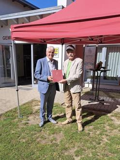 Besiegelt und versprochen: Staatssekretär Wolfgang Schmülling überreichte dem Johannes Güssmer, Bürgermeister der Gemeinde Jabel, den Zuwendungsbescheid für das neue Fahrzeug