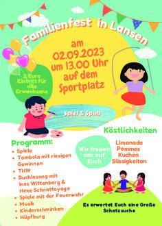 Der Sommer neigt sich – die Tage werden zwar kürzer, sind jedoch noch angenehm warm. Ideal für Aktivitäten mit der ganzen Familie und was liegt da näher als einmal die Gegend erkunden. Am Sonnabend des ersten Septemberwochenendes lädt die Gemeinde Peenehagen zum Familienfest nach Lansen auf dem Fest- und Sportplatz ein. Hier hat ein jeder Glück, denn bei der großen Tombola gewinnt jedes Los und aus allen Losen wird es zum Ende nochmals die Chance auf Hauptgewinne geben. Die Einnahmen der Tombola sind für einen guten Zweck gedacht und kommen der Jugendfeuerwehr und der Kita in der Gemeinde zu Gute. Auch Hexe „Schnattayaga“ wird in einer Buchlesung mit Ines Wittenberg dabei sein und ein Wasserspielmobil lädt zum Toben ein.
