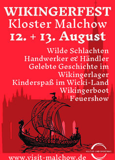 Am zweiten Augustwochenende halten die Wikinger erneut Einzug in die Inselstadt Malchow: Sie beherrschen den Damenplatz, eine Aue auf dem Kloster Malchow, mit ihrem rund 50 Zelte umfassenden Lager sowie zahlreichen Ständen.
